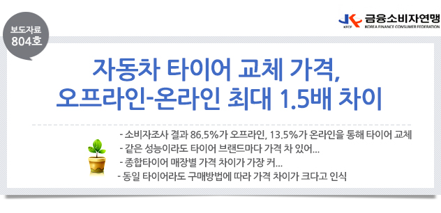 | 제목 | [보도자료 804호] 자동차 타이어 교체 가격, 오프라인-온라인 최대 1.5배 차이 | ||||