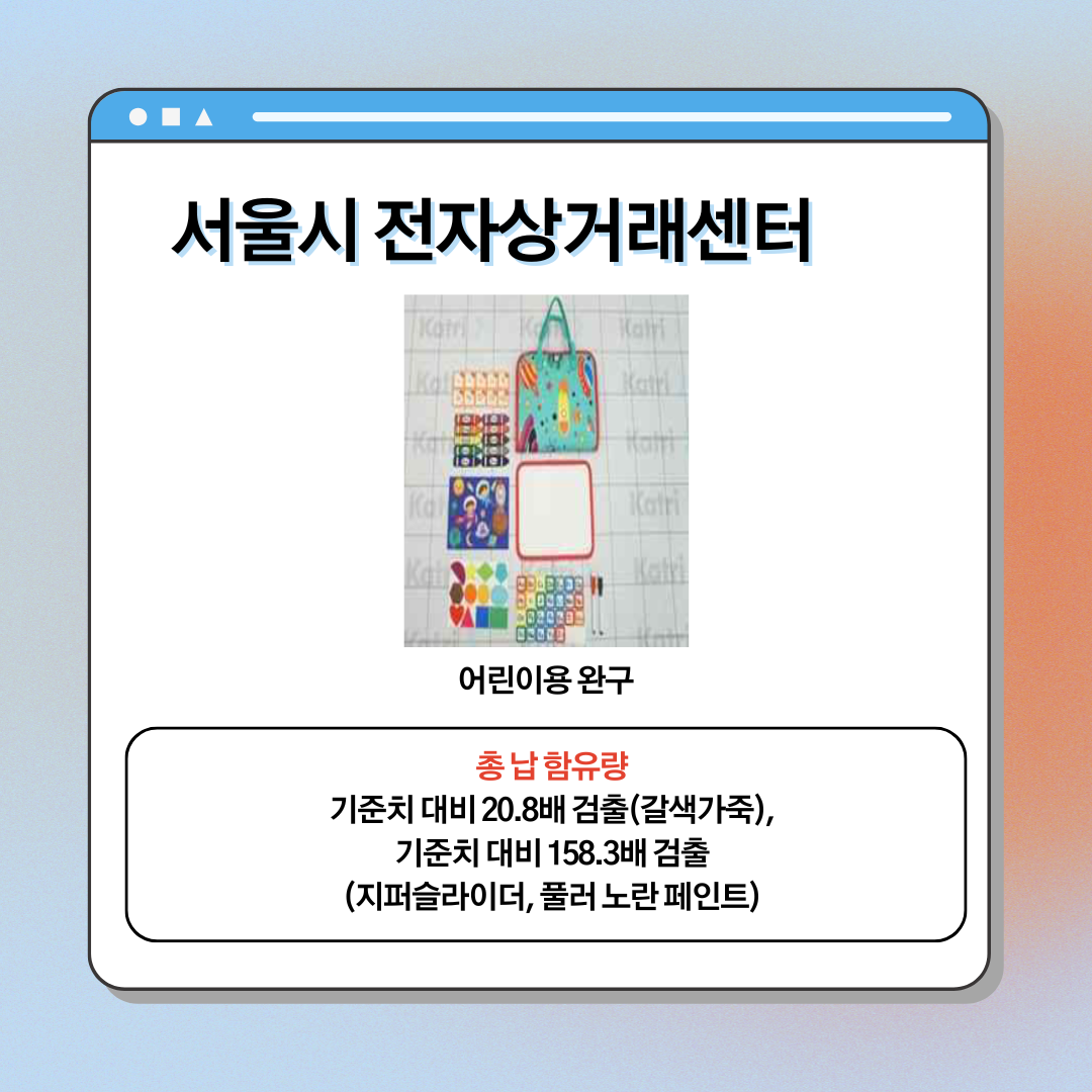 국내보다 저렴한 상품, 수입되지 않는 물품 등을 외국에서 직접 구매하는 해외직구로 시장이 해외시장까지 확대되어 소비자가 구매 물품을 비교하여 합리적인 소비를 할 수 있다. 그러나 해외직구 생활용품이 국내 기준 안전성이 검증되지 않은 제품이 많고, 안전성 검사에서 유해 성분이 발생한 부적합한 제품도 많다. ㆍ어린이 용품편①