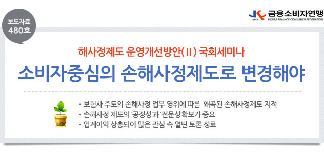 | 제목 | [보도자료 480호] 소비자중심의손해사정제도로 변경해야 | ||||