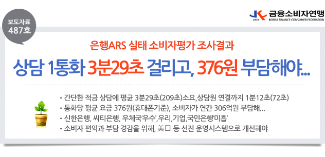| 제목 | [보도자료 487호] 은행ARS서비스평가결과 발표본 | ||||