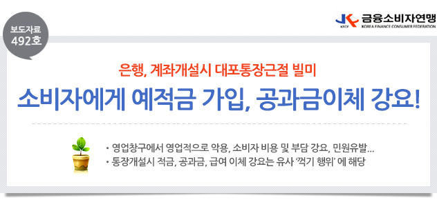 | 제목 | [보도자료 492호] 은행 대포통장근절빌미 소비자부담 강요! | ||||