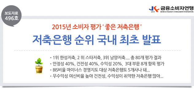 | 제목 | [보도자료 496호] 2015년저축은행평가순위최초발표 | ||||