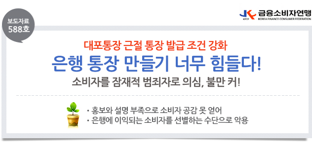 | 제목 | [보도자료 588호] 은행 통장만들기 소비자불만 크다! | ||||