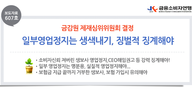 | 제목 | [보도자료 607호] 자살보험금 속인 생보사 중징계해야! | ||||