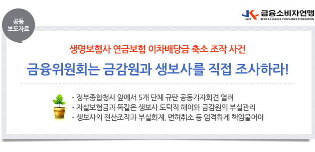 이 보도자료는 금융소비자연맹사이트(http://www.kfco.org)에 수록되어 있습니다. 끝.