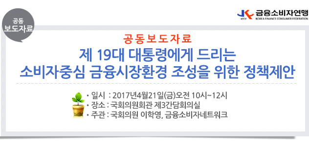 | 제목 | [공동보도자료] 19대대통령에게 드리는 금융정책제안 | ||||