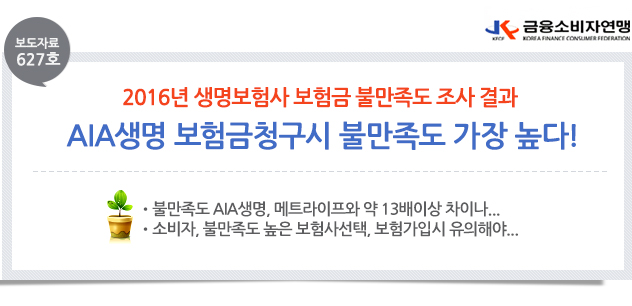| 제목 | [보도자료 627호] AIA생명 보험금불만족도 가장 높다! | ||||
