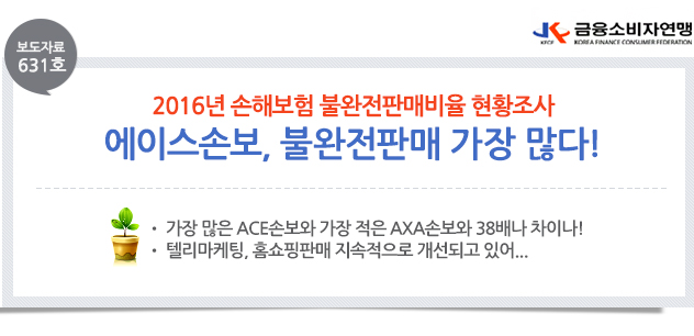| 제목 | [보도자료 631호] ACE손해, 불완전판매 가장 많다! | ||||