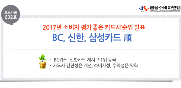 | 제목 | [보도자료 632호] 2017년 좋은카드사, BC카드1위 차지 | ||||