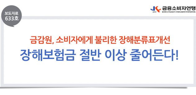 | 제목 | [보도자료 633호] 금감원 장해분류표개정시 장해보험금 절반 이상 줄어든다! | ||||