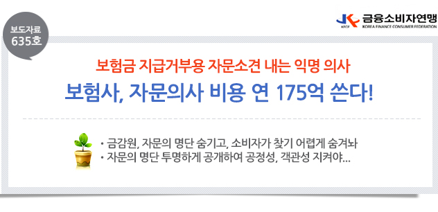 | 제목 | [보도자료 635호] 보험사, 보험금지급거부 자문비용으로 연간175억 쓴다! | ||||