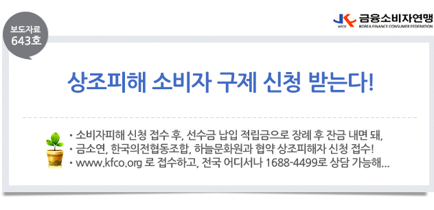 | 제목 | [보도자료 643호] 상조피해 소비자 구제 신청 받는다! | ||||