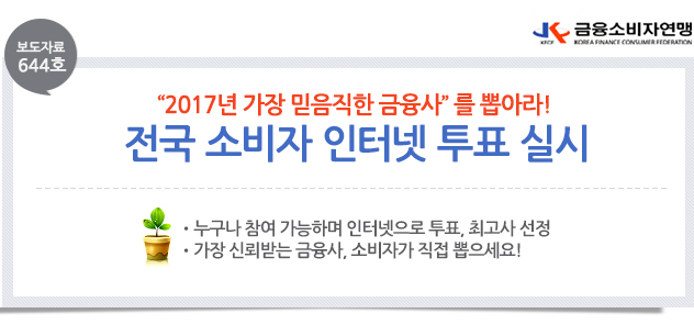 | 제목 | [보도자료 644호] 2017년 믿음직한 금융사를 뽑아라! | ||||