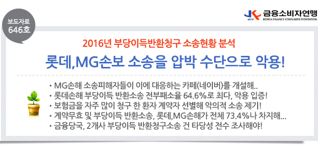 | 제목 | [보도자료 646호] 롯데,MG 소송 남발로 계약자 압박! | ||||