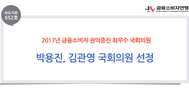 | 제목 | [보도자료 652호] 2017년 금융소비자 권익증진 최우수 국회의원 선발 | ||||