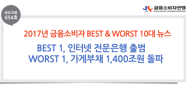 | 제목 | [보도자료 654호] 2017년 금융소비자 BEST & WORST 5 뉴스 | ||||