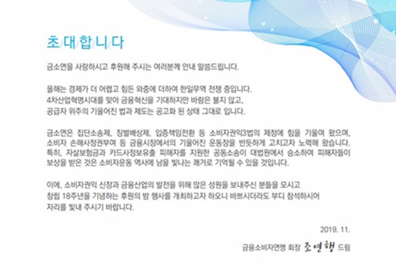 금융소비자연맹에서 공지사항을 알려드립니다.