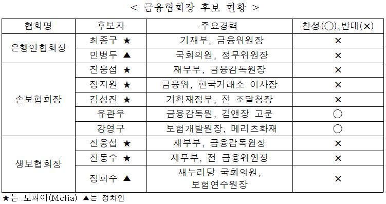 | 제목 | [보도자료 782호] 금융협회장 인선, 정부 낙하산 ‘관피아, 모피아’를 반대한다! | ||||